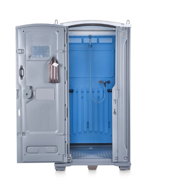 The portable shower is an ideal solution for when you have access to water mains, but no permanent showering facilities. Simple to connect to running water and a hot water system. Drainage is at the back of the portable shower for easy connection to nearby waste pipes. The Portable shower has been manufactured from the highest quality materials to meet or exceed Global safety and environmental standards. The cabinet roof, door, and wall panels are made from virgin high-density polythylene with UV additive; while the shower base is made from LDPE. This ensures that the shower is impact resistant and impervious to water absorption while being incredibly lightweight.